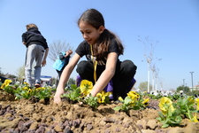 Altınşehir Şahinkayalı Çocuklarla Çiçek AçtıKahraman 4. sınıflar 'Dünyayı Değiştiren Çocuklar' projesi kapsamında Altınşehir Kaykay Parkı'nda 4 bin 500 hercai menekşeyi toprakla buluşturdu.